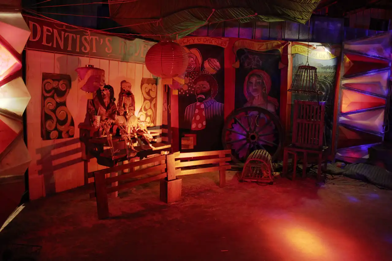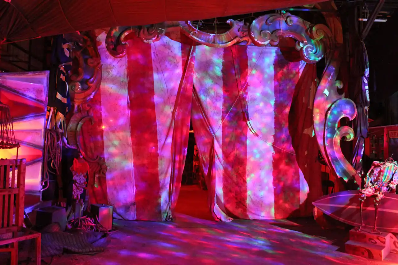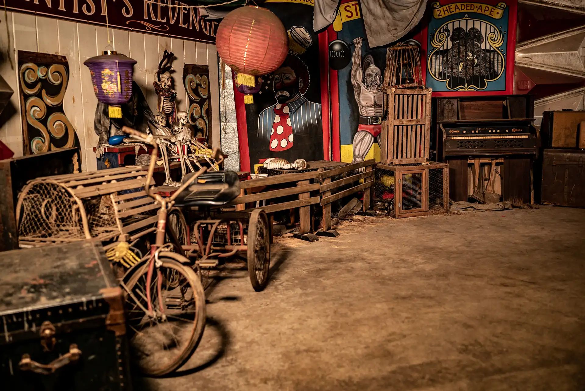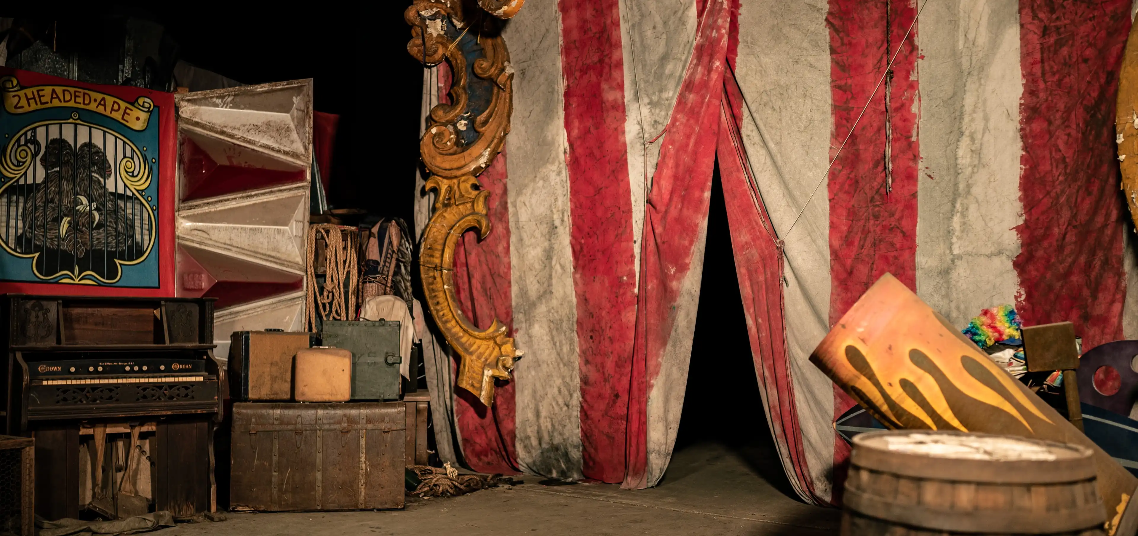 The first room that I decorated at the beginning of my first season. There weren't any plans, I was just told the space needed to look like a circus with leftover set dec from American Horror Story: Freakshow. I also had to hang the circus curtains and rig the pulley rope for the actor to draw back both sides of the curtain at the same time with one rope.