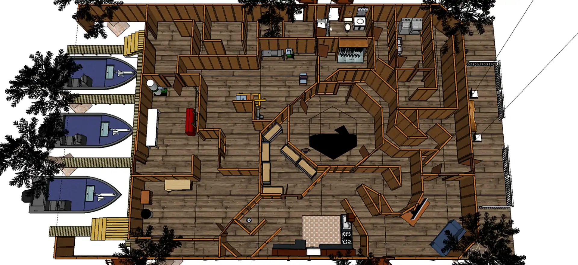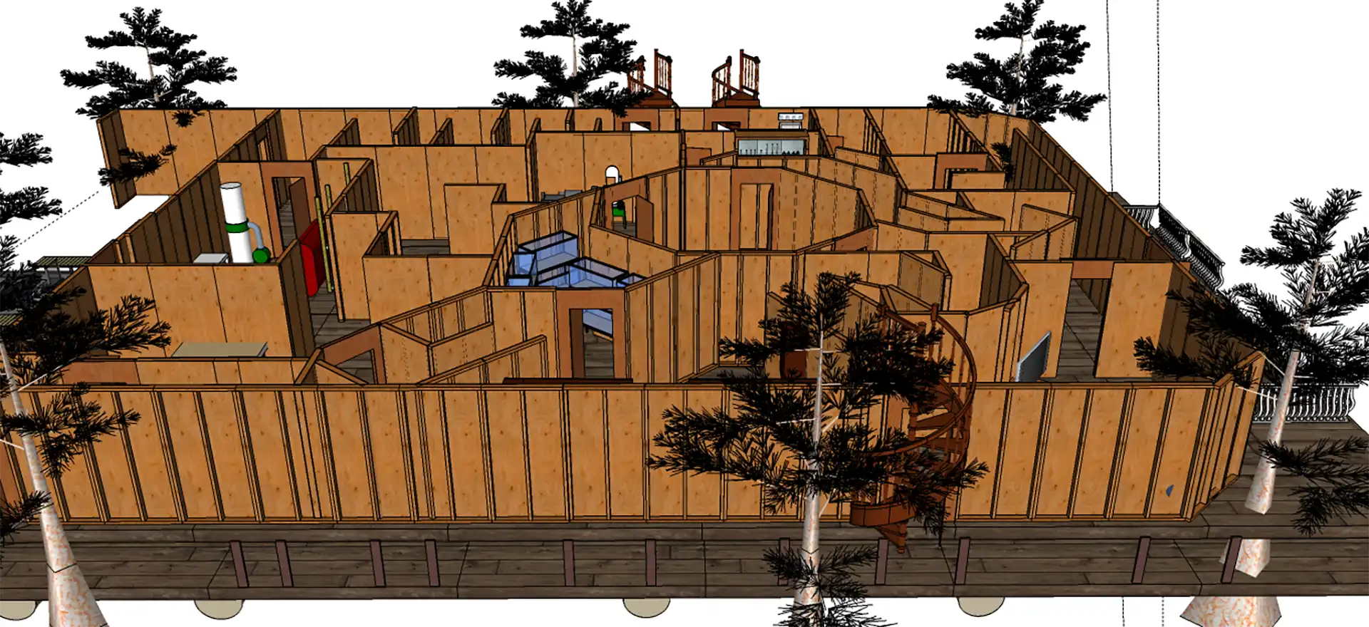 2nd floor angle perspective. The story and location were loosely inspired by a haunt I went to during college with a hillbilly backwoods redneck theme. The haunt had no story so I created one and added a twist to it, while also moving the location to the swamp.